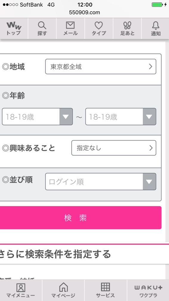 プロフの入力が終わったら女性を検索していきます。