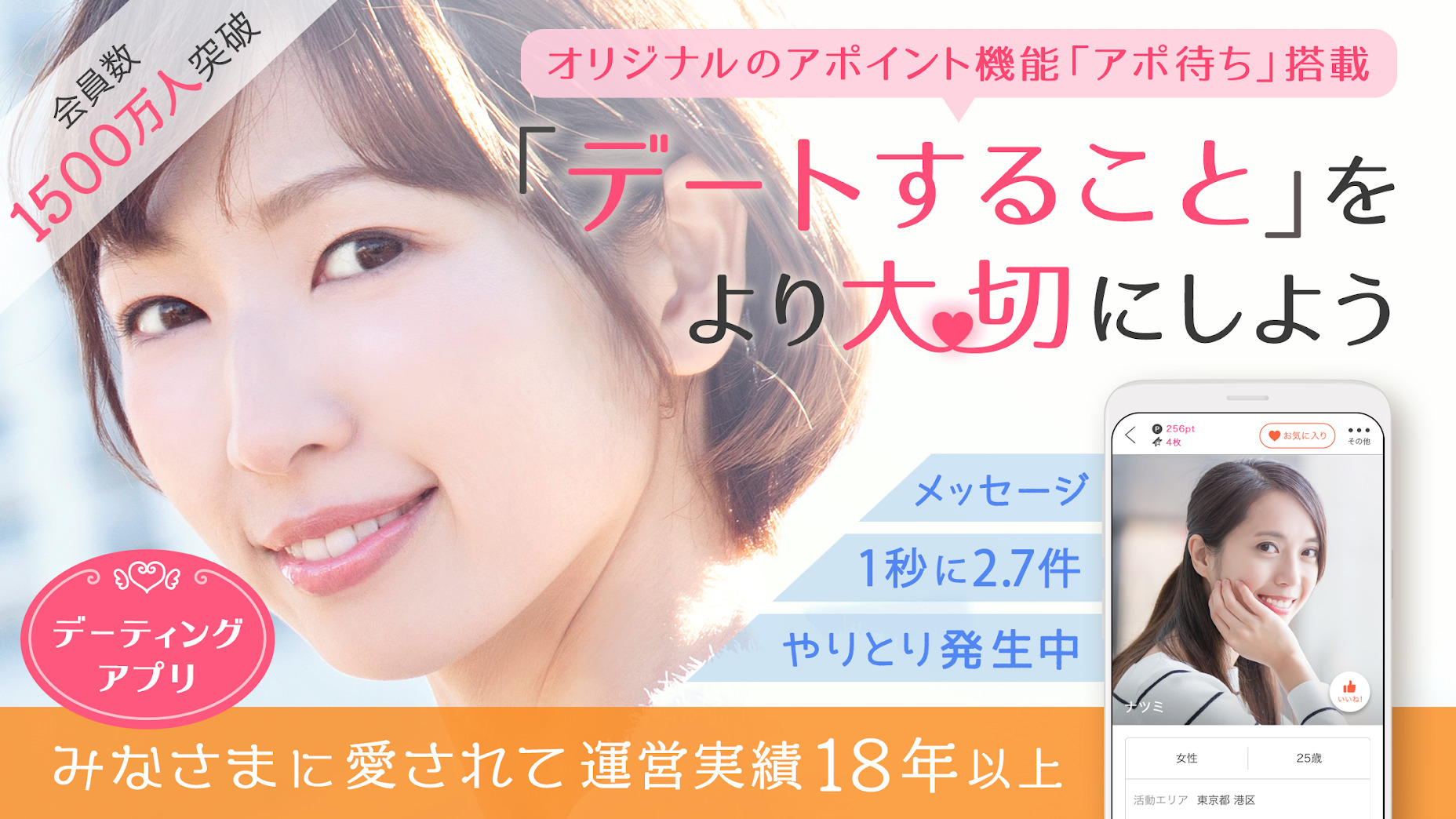 | 特徴 | 累計会員数No.1出会い系サイト |
